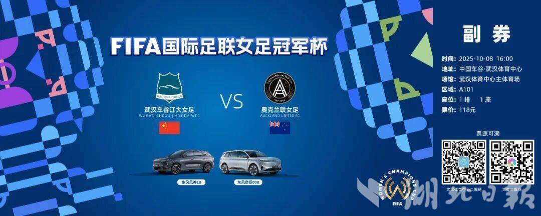 ▲本次比赛,中国女足队员将身着“东风奕派”和“东风风神”字样战袍出征绿茵赛场。 首届海外足联女足冠军杯的哨声行将吹响,看成本次赛事人,武汉体育中心将以赛为媒、以赛营城,以一流的边幅、玉成的作事,向天下展示江城武汉的专科与怜惜,确保将本次赛事办成一届精彩、圆满、高水平的海外足球嘉会。 武汉体育中心关系谨慎人先容,本次赛事门票不仅是不雅赛左证,更是福利左证,组委会深度联动湖北省旅游协会“湖北有礼”、武商集团等平台,推出餐饮、零卖、景区门票、酒店住宿等超多福利。 10月8日,国庆、中秋长假的临了一天,让咱们网络武汉体育中心,用最厉害的高歌为中国女足加油,共同见证铿锵玫瑰精彩通达!